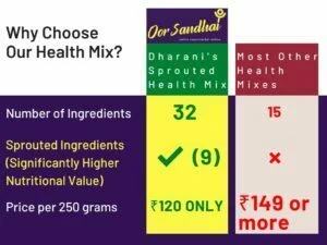 Have a cup of malt or soup with Dharani’s 32-ingredients Health Mix.